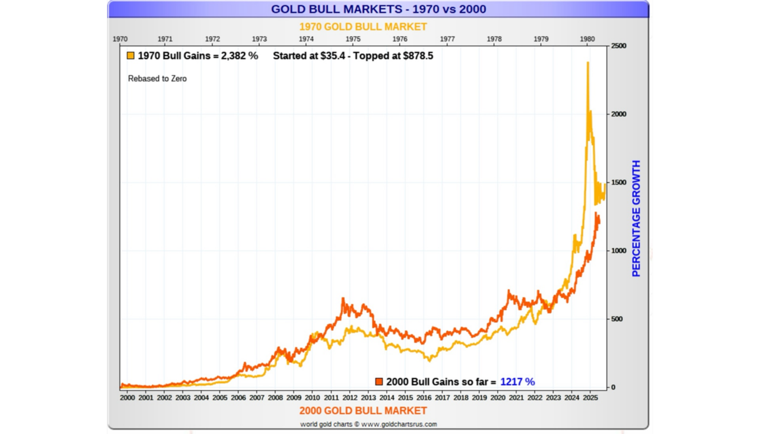 Here is a chart that compares the current gold bull market with what happened in the 1970’s. As you can see, if history was to repeat itself, Gold could do very well.